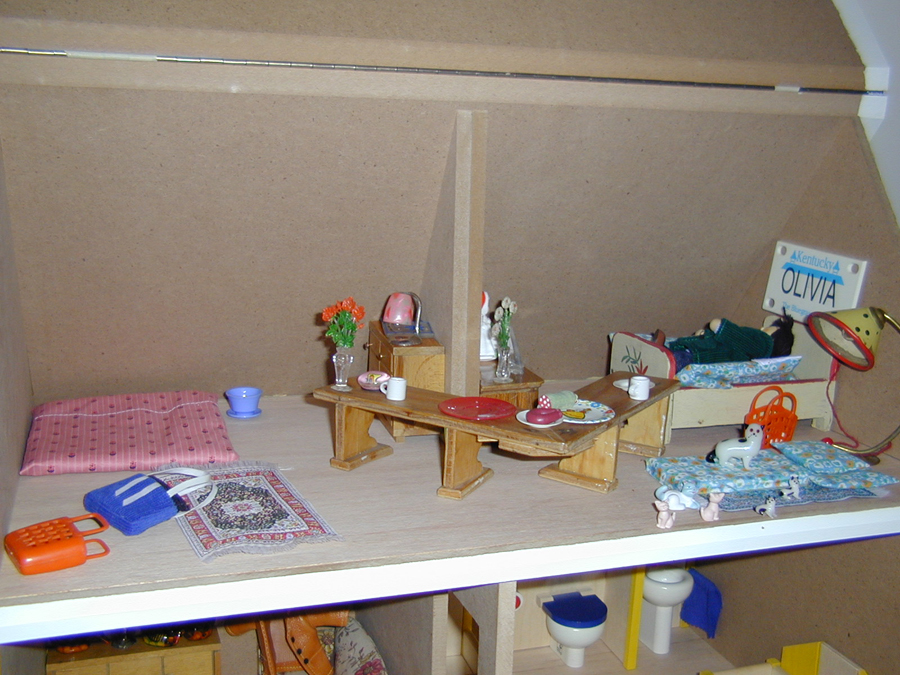 Even the attic space is hinged. Of course if this were a real house you wouldn't be able to get into the attic since there are no stairs. The dolls can fly.